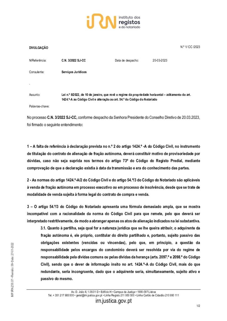 IRN – Lei n8_2022, de 10 de janeiro – artigo 1424A CC aplicação insolvência Patrício Serrão IRN – Lei n8_2022, de 10 de janeiro – artigo 1424A CC aplicação insolvência Read More »